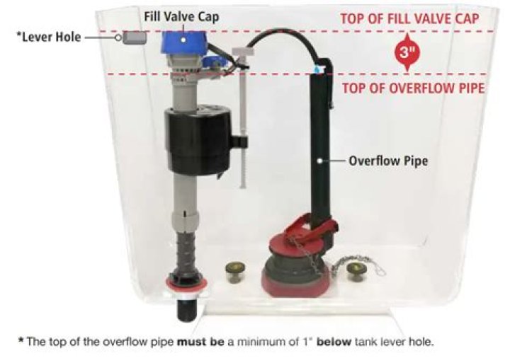While the tank is refilling a small amount of water is also going from the Fill Valve through the Refill Tube into the Overflow Tube. The Overflow Tube empties directly into the toilet bowl. If it weren’t for the Refill Tube there would be only a small amount of water in the bottom of the bowl.