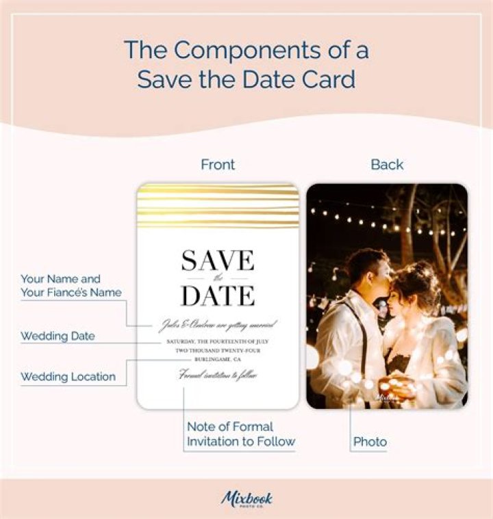 For your save the date wording, include the date and location of your wedding, the names of the happy couple, and the fact that a formal invitation will follow. There are no rules about what else to include on your save the date note.