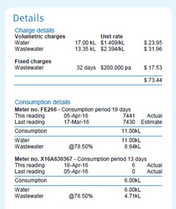 How is water calculated on a bill?