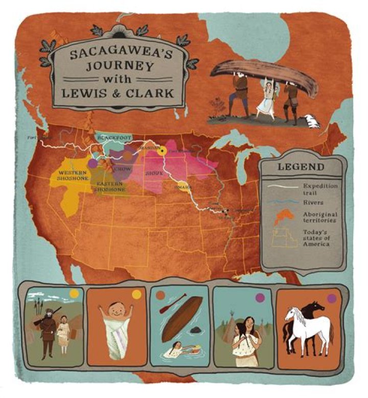 The birth was assisted by Lewis. April 7, 1805 – The expedition leaved Fort Mandan. Sacagawea, with 55days old Jean Babtiste in her arms, accompanied the expedition in a journey that would cover 5,000 miles or 8,000 km and last 16 months.