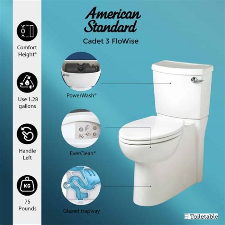 Dual flush, Slow-close seat, New handle The cadet 3 flowise right height round front toilet from american standard features a smooth sided, concealed trapway that eliminates curves and crevices for easy cleaning.