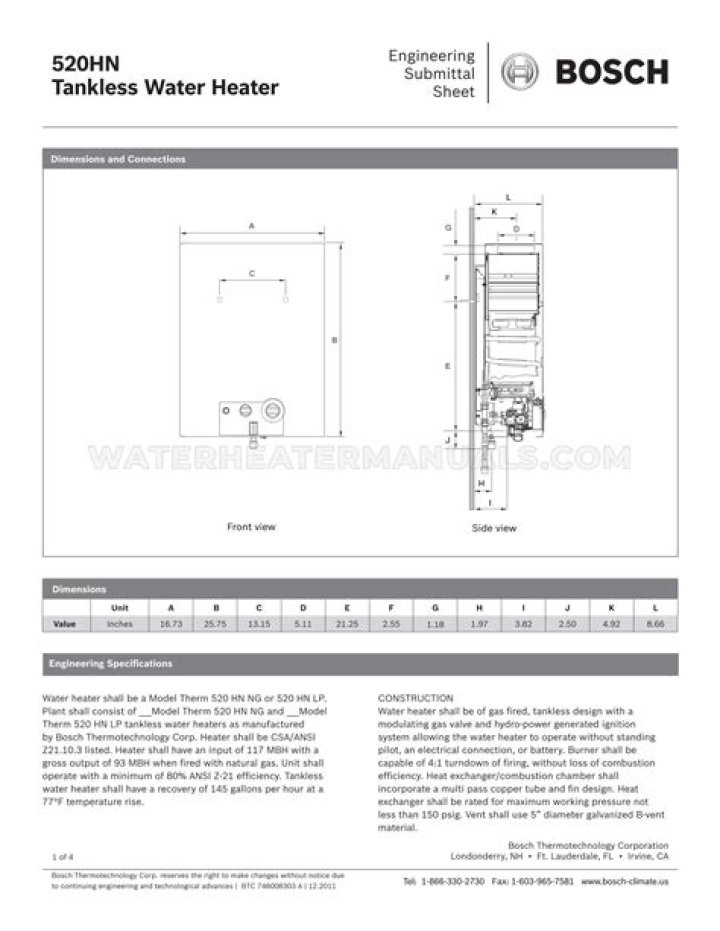 Certified for use in all provinces and states in North America. NOTE: Due to a change in CSA Regulations regarding minimum thermal efficiency, Bosch On-Demand Water Heaters are no longer available.