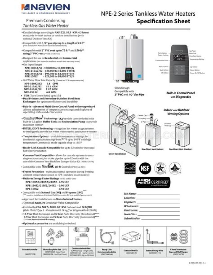Navien Premium Efficiency condensing tankless water heaters are the #1 selling high efficiency condensing tankless water heaters in North America. The NPE-2 series offers ultra high efficiency up to 0.96 UEF to keep your utility bills low, endless hot water, and exclusive ComfortFlow ® technology with built in recirculation pump and buffer tank.