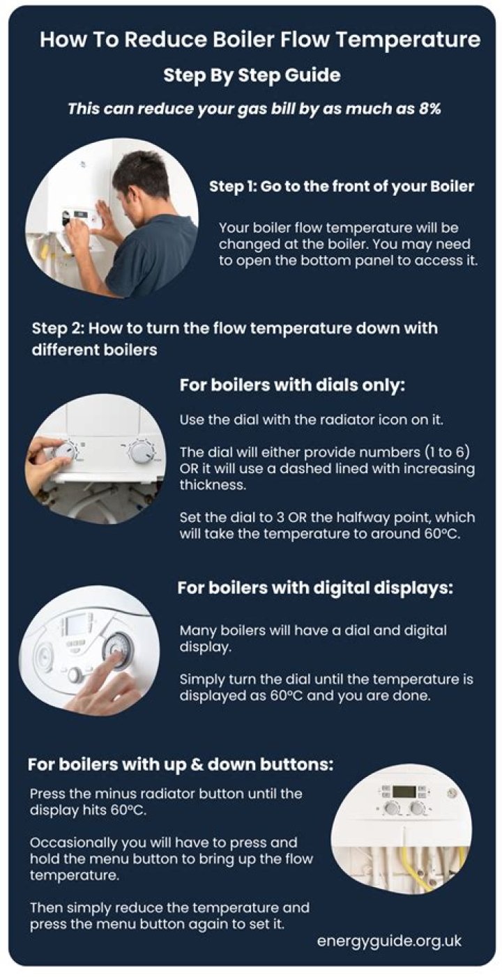 Turning down the temperature on your boiler can help increase its efficiency. Most modern boilers will have a mark on the screen that shows you the point at which condensing mode will be turned on.