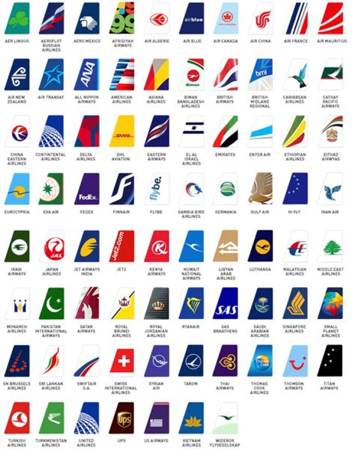 Evelop Airlines: Dark blue exclamation mark on a white circle. Finnair: Stylized letter “F” in tail. Iberia: An aircraft tailfin shape from a yellow piece and red piece (the Spanish flag colors). Formerly a stylized IB in yellow and red with a crown.