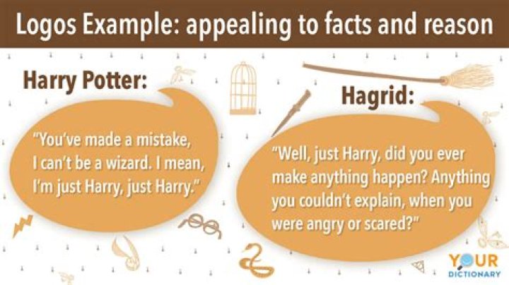 Logos or the appeal to logic, means to convince an audience by use of logic or reason. To use logos would be to cite facts and statistics, historical and literal analogies, and citing certain authorities on a subject.