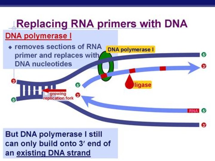 Removal of RNA primers and joining of Okazaki fragments. Because of its 5′ to 3′ exonuclease activity, DNA polymerase I removes RNA primers and fills the gaps between Okazaki fragments with DNA.