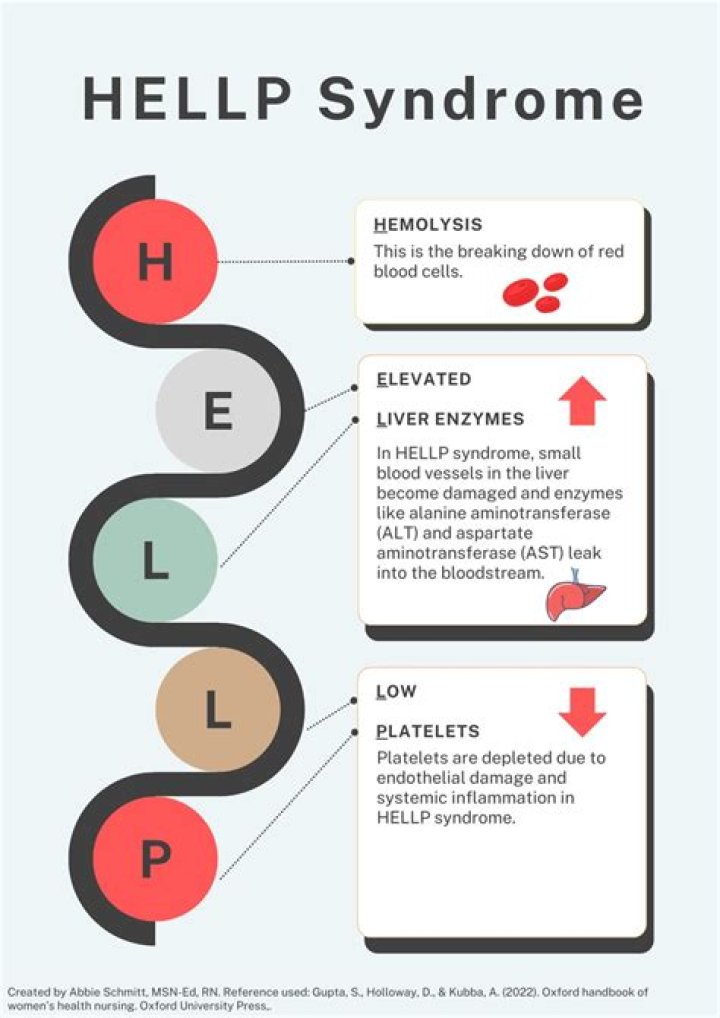 HELLP syndrome is a life-threatening liver disorder thought to be a type of severe preeclampsia. It is characterized by H emolysis (destruction of red blood cells), E levated L iver enzymes (which indicate liver damage), and L ow P latelet count. HELLP is usually related to preeclampsia.