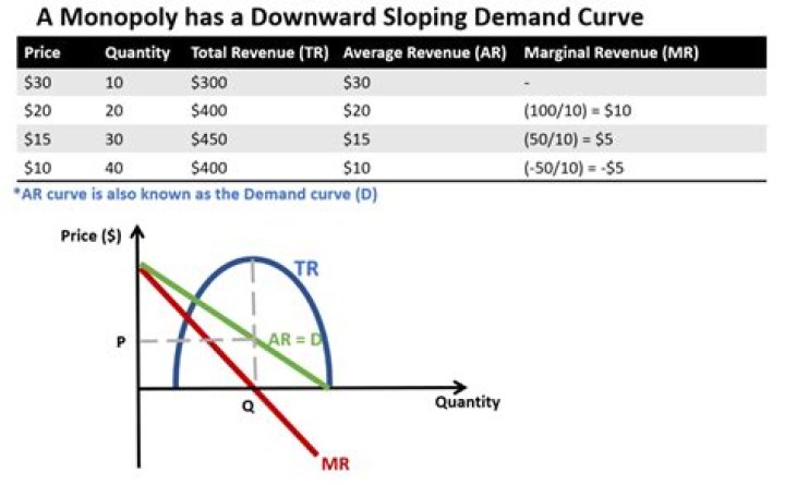Observations from the table. Since he charges a single price for all the units he sells, the average revenue per unit is identical to the price. Therefore, the market demand curve = the average revenue curve for the monopolist. In a perfect competition, the marginal and average revenues are identical.