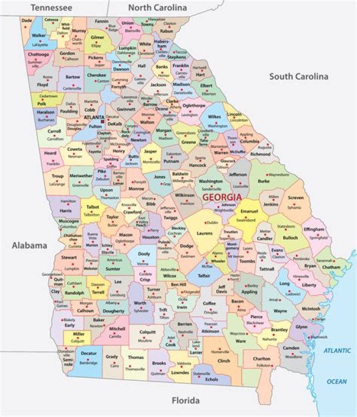 Georgia is bordered by Tennessee in the north, South Carolina and the Atlantic Ocean in the east, Florida in the south, and Alabama in the west.
