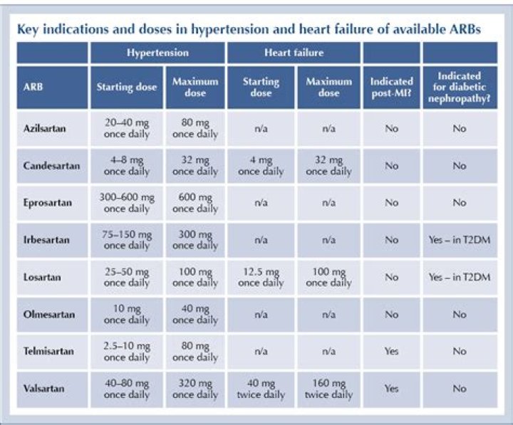 However, it is apparent that at their current standard doses, four ARBs – irbesartan 150–300 mg, candesartan 8–32 mg, olmesartan 20–40 mg and telmisartan 40–80 mg – all reduce BP more effectively than losartan 50–100 mg.