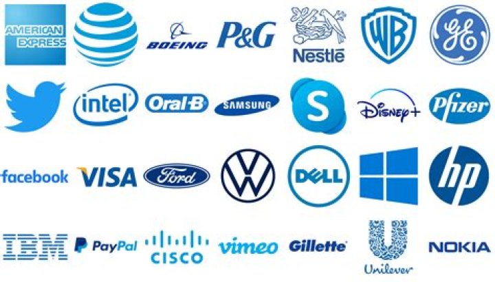 The logos in blue include: 1 American Express 2 Dell 3 Facebook 4 Ford 5 Hewlett-Packard 6 IBM 7 Lowe’s 8 Oral-B 9 Oreo 10 PayPal 11 Pepsi 12 Skype 13 Walmart More