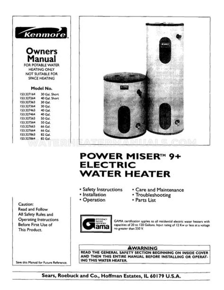 Kenmore 9006666 Water Heater Pilot Assembly Genuine Original Equipment… … View our selection of Kenmore electric water heaters, available in a variety of sizes. An electric water heater has a few perks over the traditional gas water heater. For one, electric heaters have no chance of a gas leak, which is great for peace of mind.