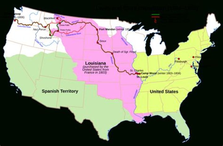 1804-1806 – Meriwether Lewis and William Clark were commissioned by Jefferson to map and explore the Louisiana Purchase region. Beginning at St. Louis, Missouri, the expedition travelled up the Missouri River to the Great Divide, and then down the Columbia River to the Pacific Ocean.