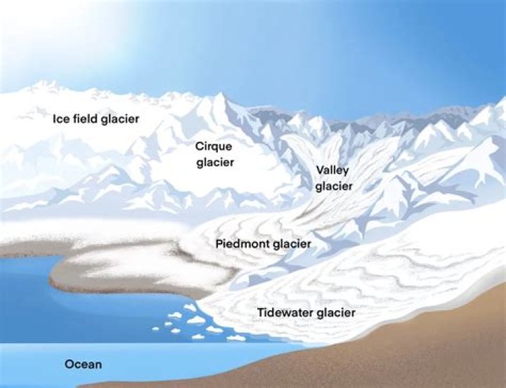 A glacier is a huge mass of ice that moves slowly over land. The term “glacier” comes from the French word glace (glah-SAY), which means ice. Glaciers fall into two groups: alpine glaciers and ice sheets.